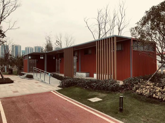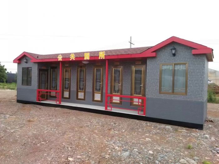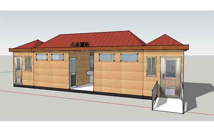 拼裝廁所;在廠里做好各個廁所部件,再到現(xiàn)場組裝在一齊,適合不易運輸的大型廁所。這座箱式廁所,女廁5個蹲位內配工具間,男廁2個蹲位+2小便斗,第三衛(wèi)生間由殘疾馬桶、助力洗手盆和兒童馬桶、兒童洗手盆外加嬰兒臺等設施。廁所前后有窗,通風采光,前部走廊裝有屋檐,防雨防曬。此廁所位于公路綠道邊,整體大氣,功能齊全,造型美觀,是一道難得的靚麗景觀!
