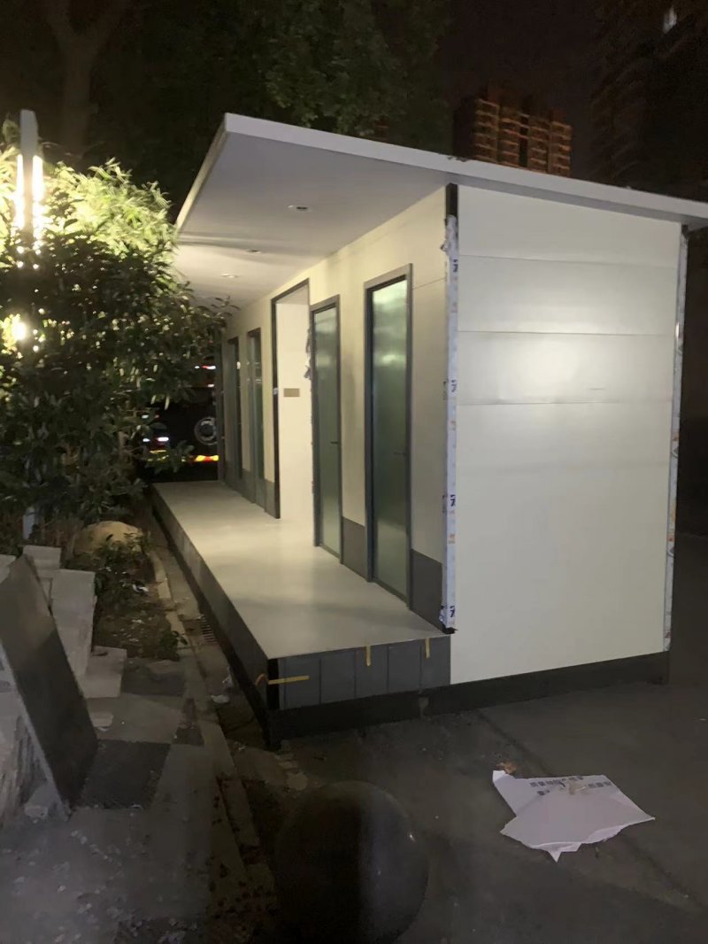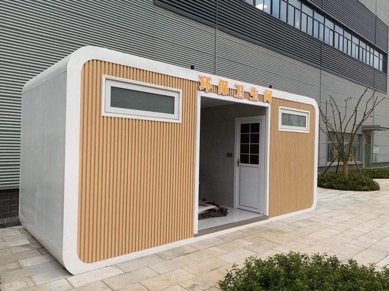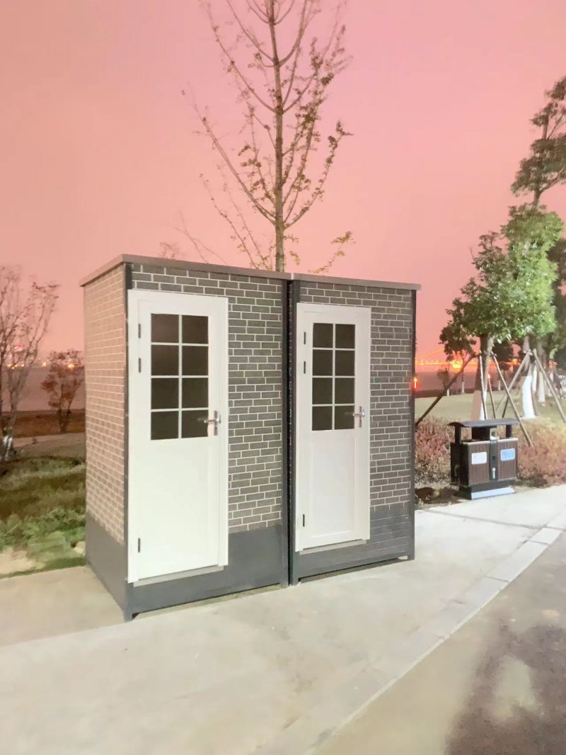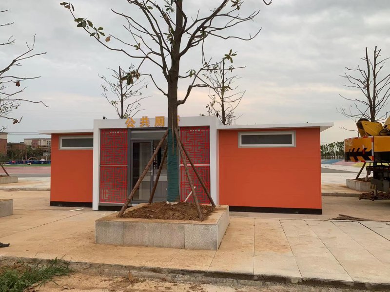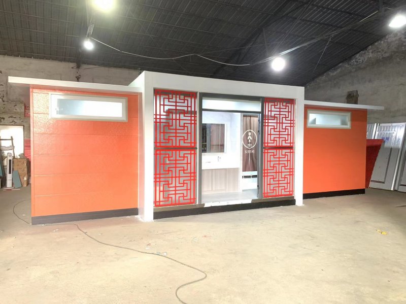 拼裝廁所;在廠里做好各個廁所部件,再到現(xiàn)場組裝在一齊,適合不易運輸的大型廁所。這座箱式廁所,女廁5個蹲位內配工具間,男廁2個蹲位+2小便斗,第三衛(wèi)生間由殘疾馬桶、助力洗手盆和兒童馬桶、兒童洗手盆外加嬰兒臺等設施。廁所前后有窗,通風采光,前部走廊裝有屋檐,防雨防曬。此廁所位于公路綠道邊,整體大氣,功能齊全,造型美觀,是一道難得的靚麗景觀!